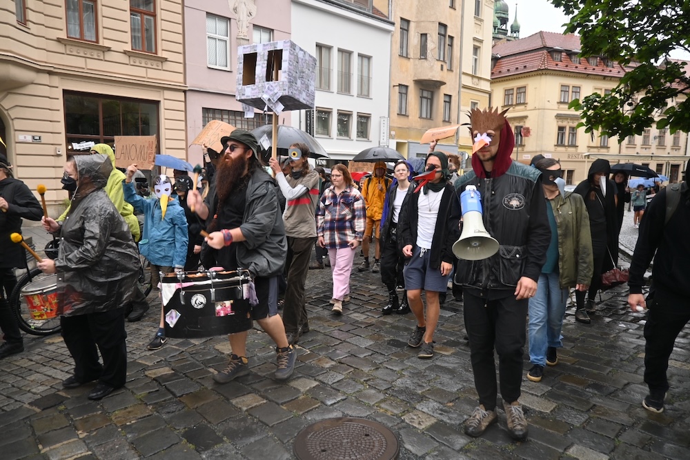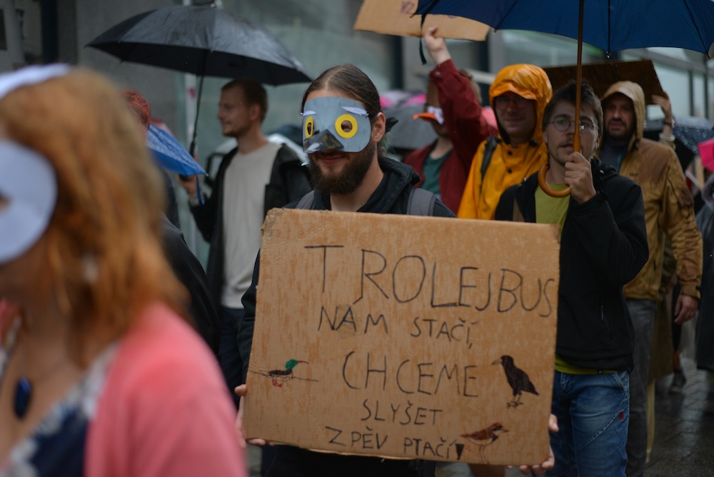 Lanovku nechceme. Brnem prošel průvod za zachování nocoviště havranů